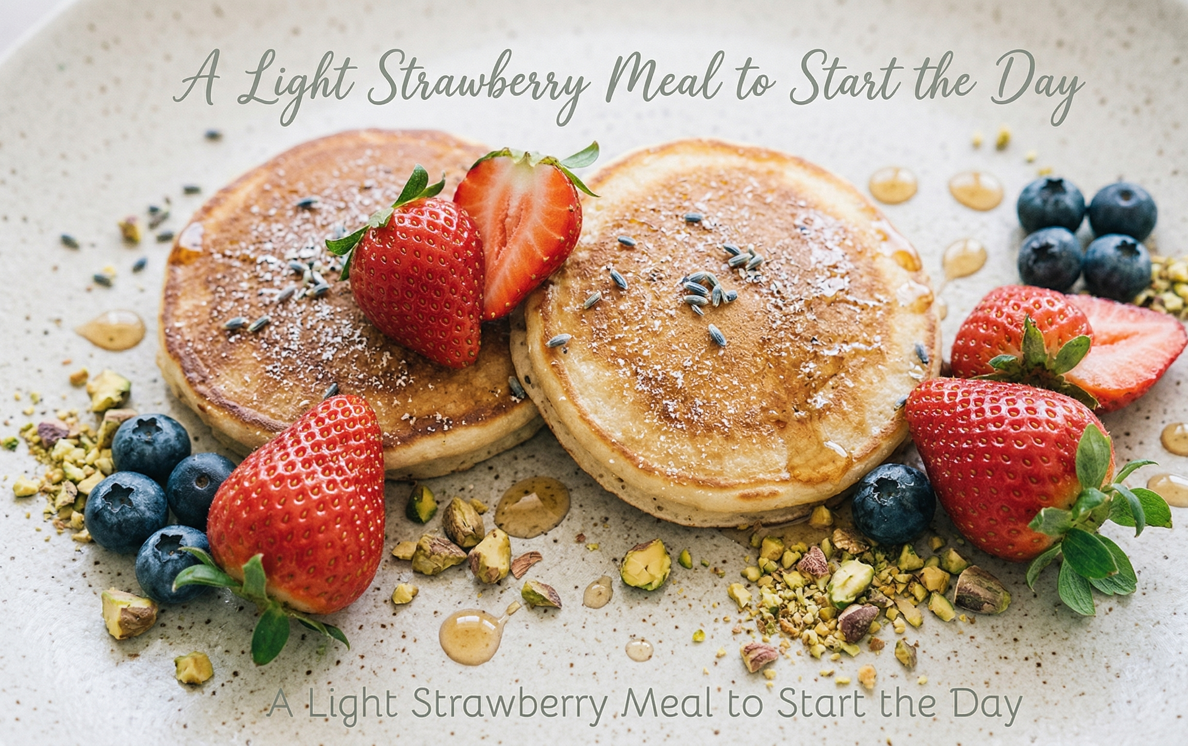 Ez a recept könnyű, puha palacsintákról szól, friss eperrel, áfonyával és pisztáciával, melyeket egy könnyű mézes vagy juharszirupos szósszal tálalunk.